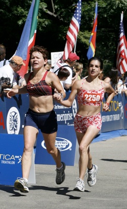 were going by so slowly as my legs were feeling the pounding on the road, and my last gell did very little for me. Getting to the finish became a mental challenge, and each of you gave my mind and heart the fuel needed to carry me home. (Cris, robbin and Jeff, it was great seeing you out there cheering!) As Julia took the tether for the last half a mile, I could feel my heart pounding harder and faster each second, and we both began to sprint home. It was exhilarating to finish strongly, and to share our finish with Gregg, Dave, Ive, Andy and Rick! (Thanks for my delicious Hot Chocolate Rick!)