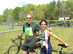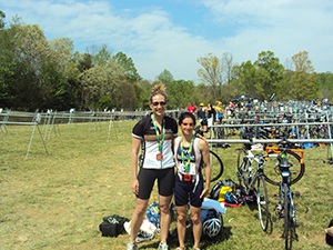 By 6PM on Thursday, I was speaking with Sara Tribe on the phone. Originally from Boston, she’s currently living in Washington DC, and is part of the Bike Rack Multisport team. She was full of excitement, and eager to know what guiding entailed. I explained that we would be tethered during the swim, ride a tandem for the bike, and use a tether on the run. “OK, no problem. I’ve never guided, but” she said, “let’s do it!”